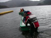 赤ブイ〜奥出湾の奥、水深4〜6mでキャッチ。D.S.のシンカーは軽めの方がアタリが多かった。8匹ゲット。帽子が風邪で飛ばされて回収作業の為に釣時間短め(言い訳?)。 | |