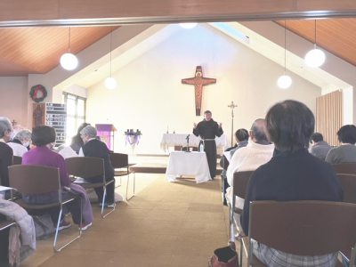 この期間、まず、私たち自身の心を準備するために、多くの教会では黙想会をひらきます。黙想会とは、みなで集まり、聖書の言葉やそれについての講話に耳を傾け、静かに思い起こし、祈る時間をとることです。2023年は長谷川潤神父(フランシスコ会)をお迎えし開催しました。