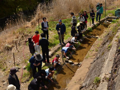 3.ホタル幼虫の放流 ホタル保存会で1年間かけて育てたホタル幼虫の放流を行っています。一気に復活とはいきませんが、住民みんなで育てたホタルが、ホタル復活の希望の灯りとなり、みんなのホタルへの関心がさらに高まることを願って、活動を続けています。 |