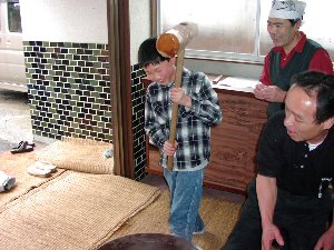| hajimeが我が家代表で餅つき |