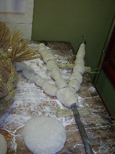 搗きあがった餅を床の間に飾り、次の日奉納する |