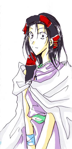 黒目、黒髪、髪は戦闘の邪魔にならないよう、バンダナに結ってある。 |