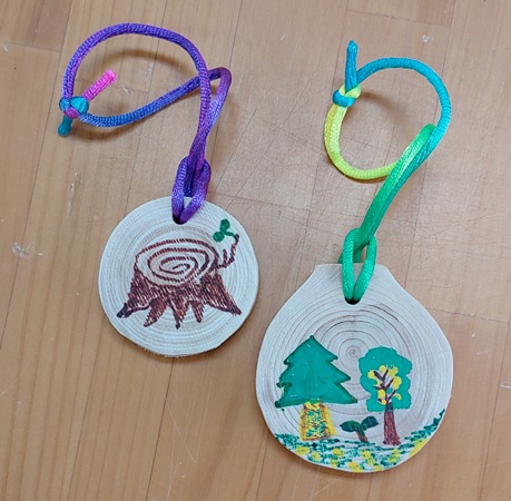 ◯「木のストラップ作り」 ヒノキや広葉樹の木のストラップを作るよ! 森や木のお話も聞けるよ!