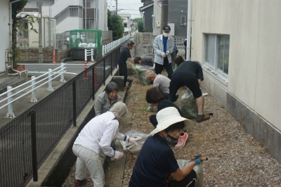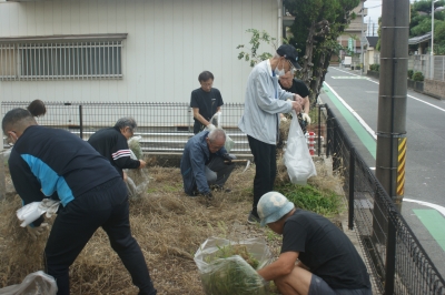 体育館周辺の除草作業 令和7年10月10日(金)午後0時00分〜 金曜日組 参加者 約40名 |